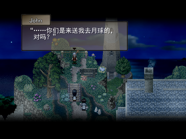 这一个小部分由Neil和Eva医治John开始。John是一名垂死的老人,而他的临终的心愿是“去月球”。Neil和Eva所在的公司可以改变人一生的记忆从而来实现人们的愿望。这一小段给人的感觉很扑朔迷离的。从两人到一个悬崖边的房子,房子主人已经失去了意识,房间、灯塔的探索,再到进入John老年的记忆,作者将很多的线索都抛了出来,也引出了人物之间的关系:纸兔子、鸭嘴兽、腌制的橄榄、River、《For River》……不得不说我在第一次玩的时候根本无法想象他们之间会有什么关系,特别是那些令人毛骨悚然你的纸兔子!在我第一次在地下室见到它们的时候,那个音乐惊悚得我整个人差点以为这个是恐怖游戏。所以感觉作者在故意将我们的思维引导向一段不美好的回忆。整个第一节的氛围是不高昂的,甚至是萦绕着一种悲剧氛围。John想去月球,但不知道为什么;他很爱River但是从来不明白为什么River会选择为了灯塔和房子牺牲自己;他也从来不明白那些奇妙的纸兔子和鸭嘴兽的故事。所以他似乎就在不算明白的人生之中度过一生,我个人为John感到悲哀,也为这样一段爱情、亲情的关系感到迷茫。