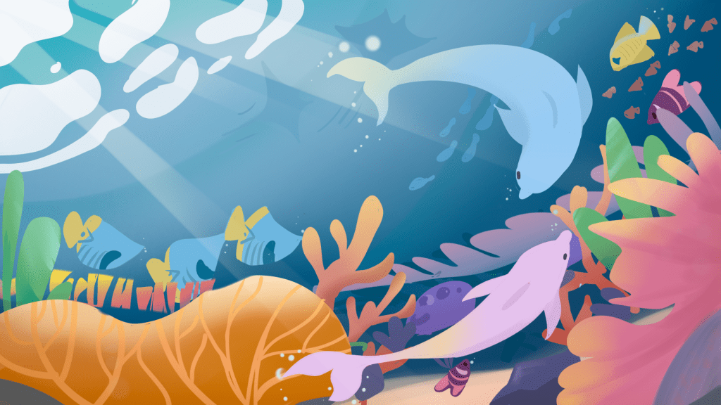Welcome to Delfini, the dolphin archipelago. You and your partner, two cute dolphins, can chill around the islands and have fun navigating the sea. You can sing with each other and guide the fish through harmony to bring life to the whole island.