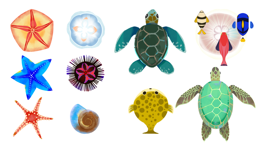 Visual Artist: I drew 90% of the art assets, including concept art, UI and all the coral reefs.