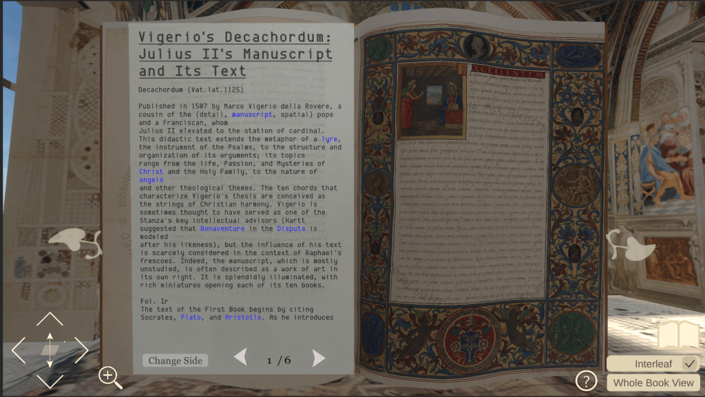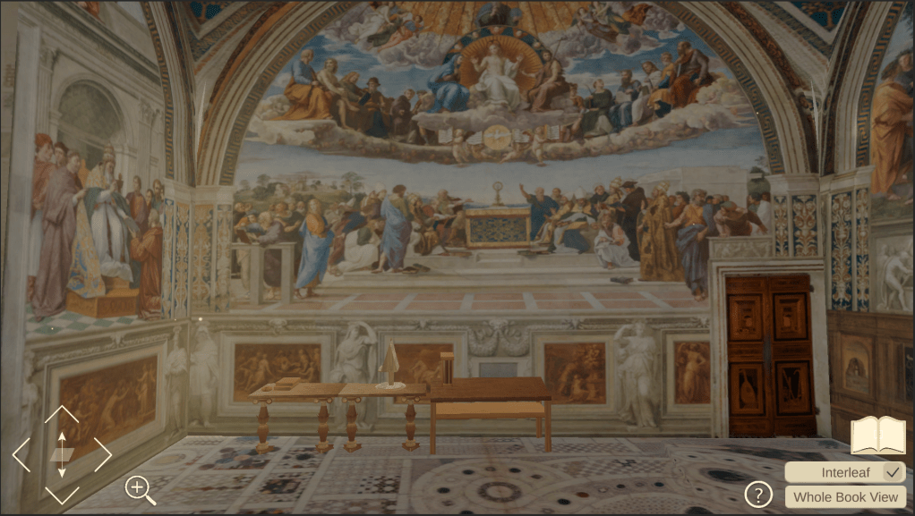 Digital Bibliotheca Iulia Instaurata or Digital Stanza is an interactive reading experience. By recreating Raphael Rooms in Vantican City, we aimed at providing plyers an unique reading experienece through the lense of art history and history.