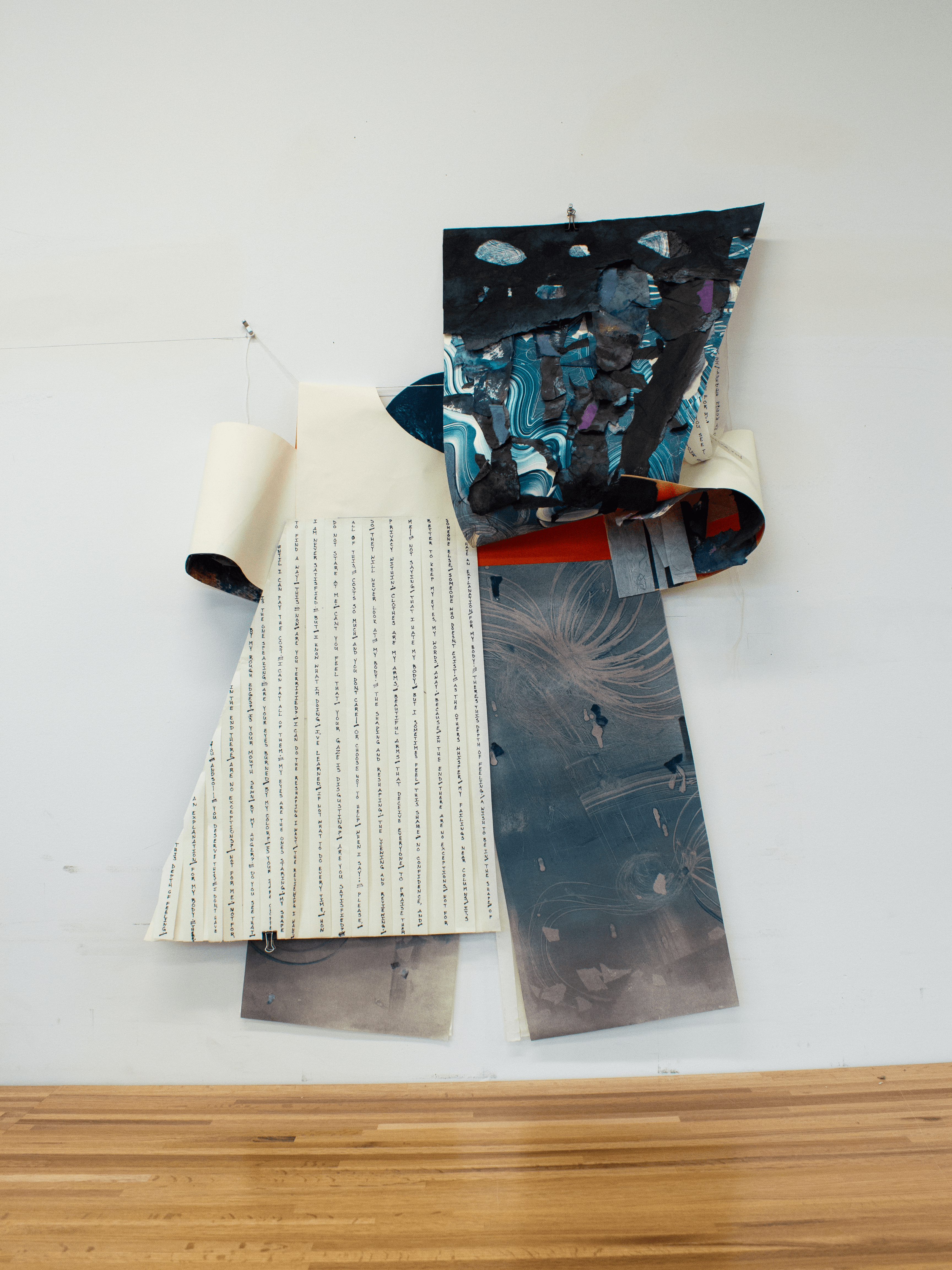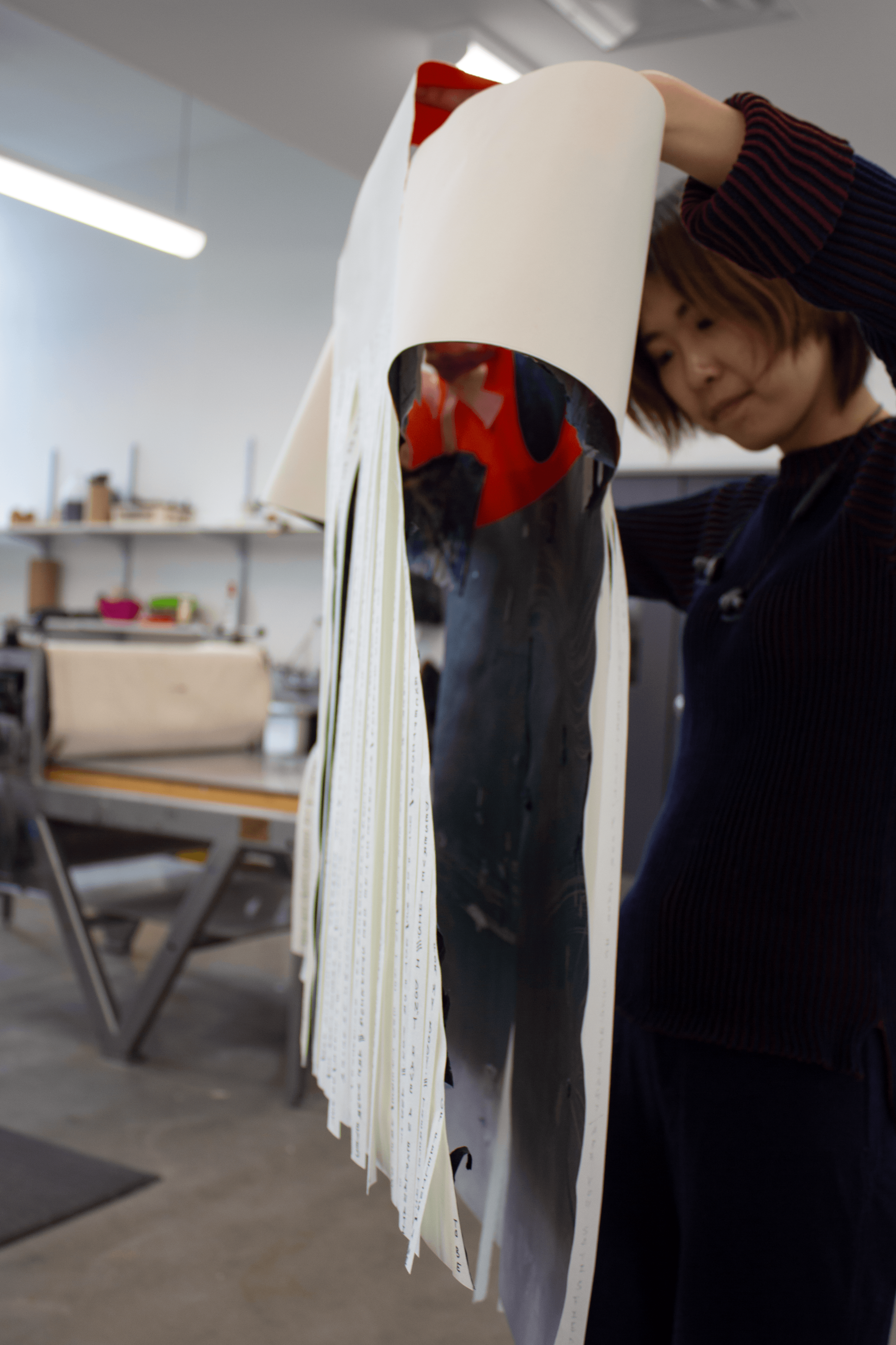 Cloak Girl was collaborated by Yuwei Lin, Dara Golding and Carson Waltlinton. This project was inspired by the conflicts between our inner world and outer world. Mind, emotions, collapses… All our internal consciousness or subconsciousness was deliberately covered by our organized appearance. At the same time, clothing served for the protection of the girl, not only for her mind, but also for her physical body. The poem written outside means to calm down all the rages, but also to shame all the gazes.
